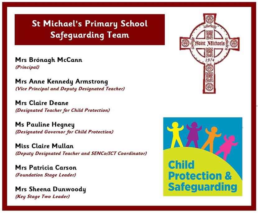 All adults who work in St. Michael’s are vetted in accordance with safe recruitment and selection procedures. All staff receive annual refresher training on Safeguarding and Child Protection and Designated teachers have specialist training every 2 years.