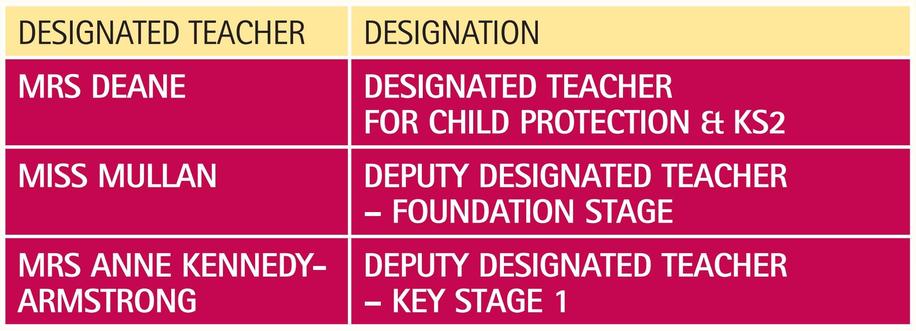 If you have any concerns about a child, please do not hesitate to contact one of our Designated teachers.