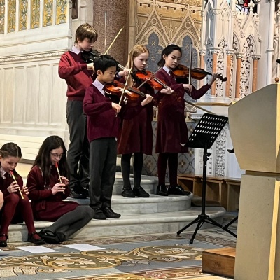Our Year 4-6 traditional and folk group members participating  in a traditional music performance in 2 Royal Avenue run by the Glengormley School of Traditional Music �� ����